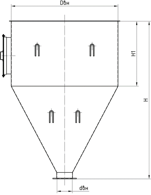 Данный тип часто обозначается – бункер Ц. Типовой ряд стандартных моделей представлен изделиями с объемом от 0,1 до 22,9 м3.