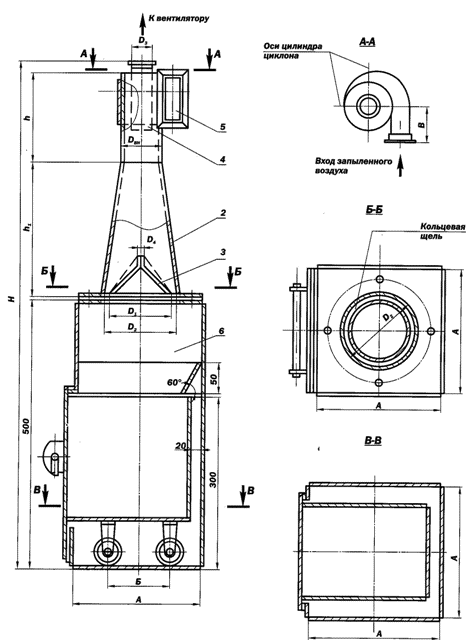 Циклон следует устанавливать перед вентилятором, так как это обеспечивает защиту вентилятора от лишнего износа.