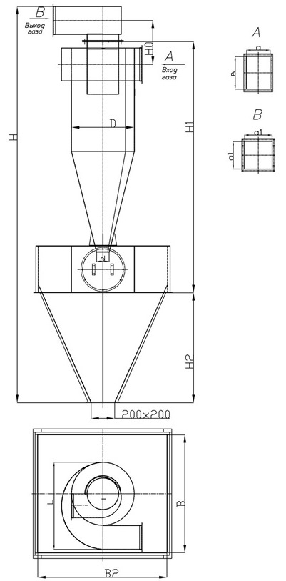 Циклон СЦН-50 в исполнении с бункером: габаритные размеры и технические характеристики