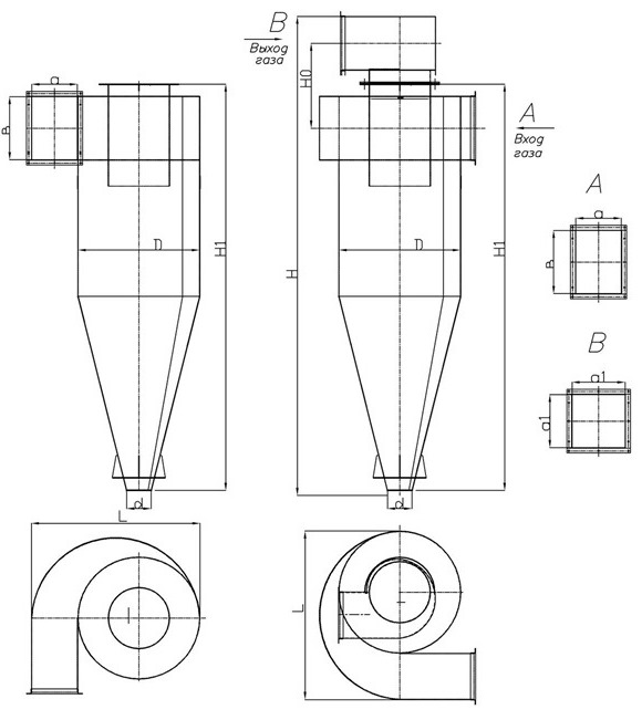 Циклон СЦН-50 в исполнении с улиткой / без улитки: технические характеристики