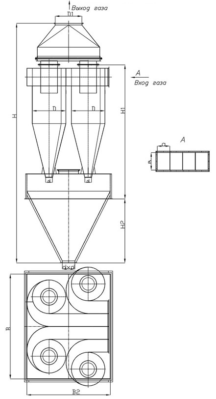 Циклон групповой СЦН-50 (группа из 4-х циклонов): габаритные размеры и технические характеристики