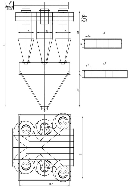 Групповой циклон СЦН-50 (в группе из 6-циклонов) с бункером: технические характеристики
