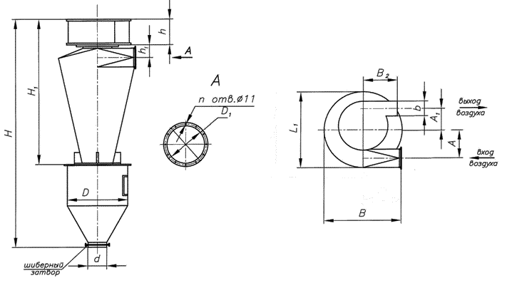 | Циклон СИОТ-М №1 | 1500 | 703 | 2075 | 170 | 170 | 138 |